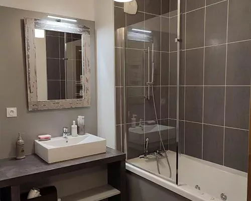• A spacious bathroom equipped with a whirlpool bathtub for a moment of absolute relaxation. You will also find a hairdryer and a towel dryer, for optimal comfort after your refreshing shower.